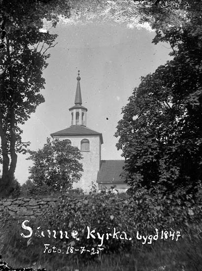 Enligt text på fotot: "Sanne kyrka, Bohuslän, byggd 1847. Foto. 18-7-25".