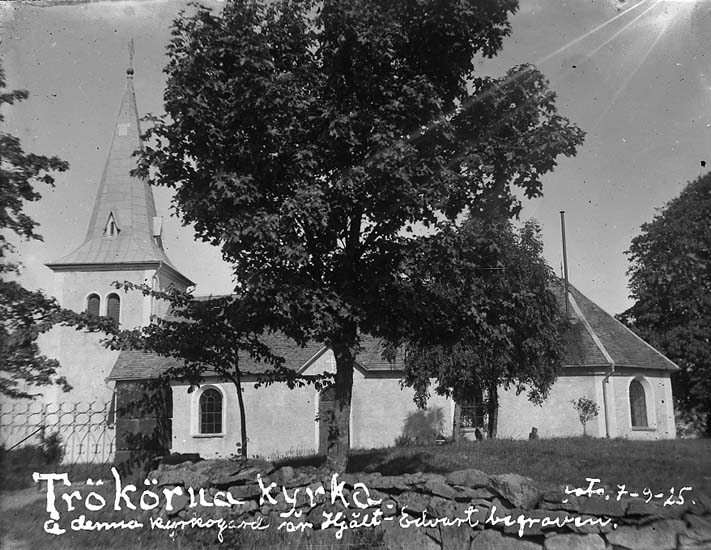 Enligt text på fotot: "Trökörna kyrka å denna kyrkogård är Hjält-Edvart begraven, foto 7-9-25".