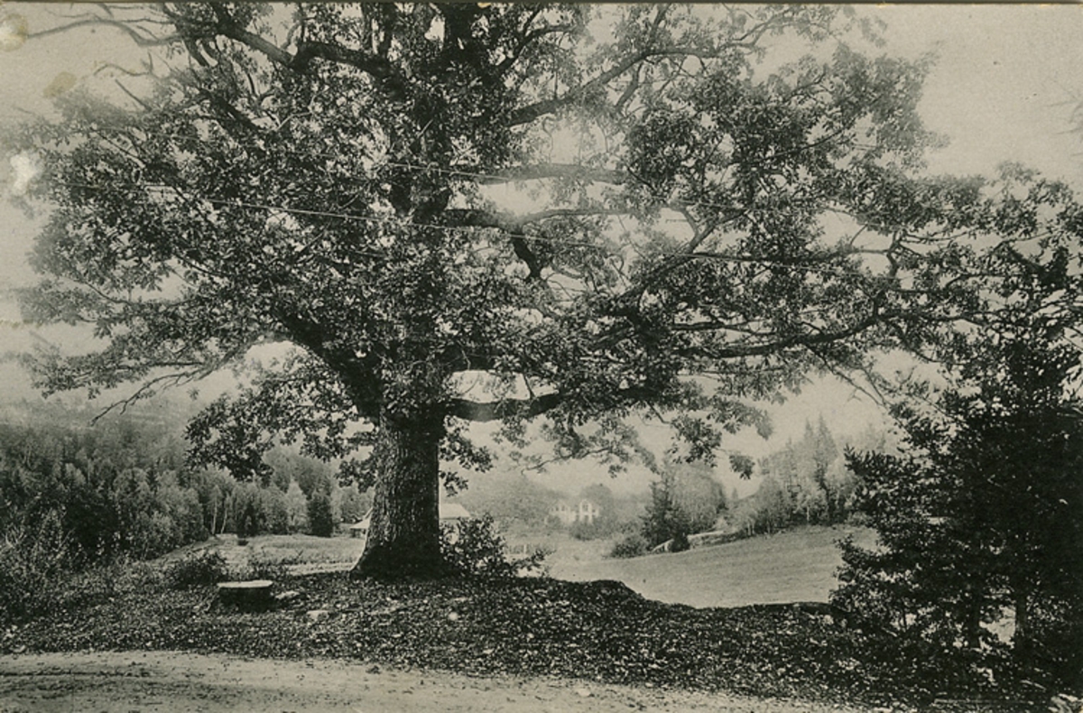 Text på kortet: "Uddevalla. Carl XII s ek vid landsvägen till Uddevalla. Naturminnesmärkt nr 40. Lilla Hässleröd, forshälla socken. Fridlyst 1946".