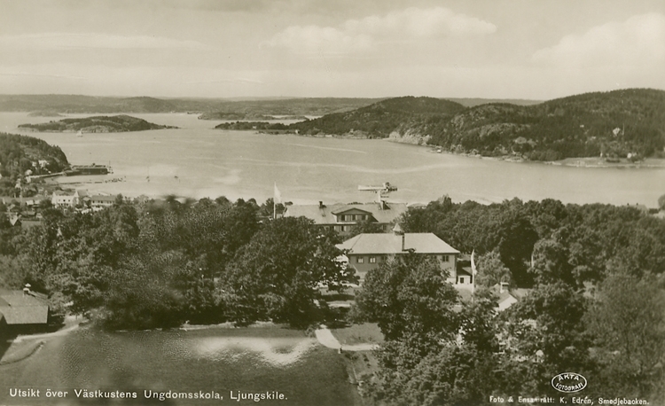 Enligt Bengt Lundins noteringar: "Ljungskile. Utsikt över Västkustens Ungdomsskola".