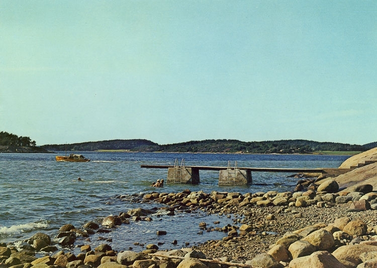Enligt Bengt Lundins noteringar: "Åh Stiftgård. Badbrygga. Motorbåt".