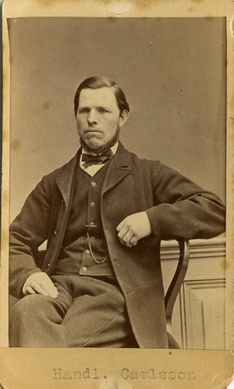 Text på kortets baksida: "Handlanden Carlsson Västerlångg. No 204 Uddevalla. Ägde Carlsruhe en tid".