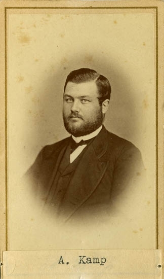 Text på kortets baksida: "Apotekare A Kamp. Son till Marie Kamp. Äldste son af apotekare kampe i Uddevalla".