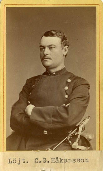 Text på kortets baksida: "Löjtnant Carl Gustaf Håkansson, f. 1849".
