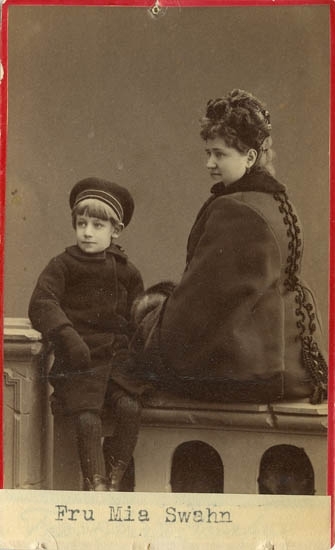 Text på kortets baksida: "Fru Mia Swahn med son".