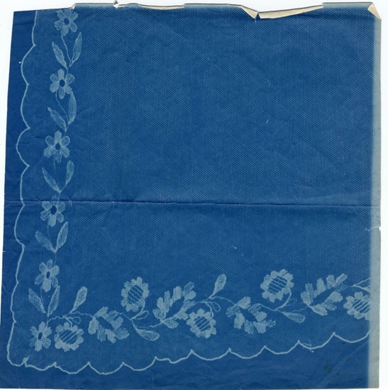 Titel: Text på kortets baksida: "Kop. Hemslöjdsutställningen, Strömstad 1919." Tyllduken ung. 100 år tillhörig Hedda Hansson Ytten Näsingen. Kleberg Askim.