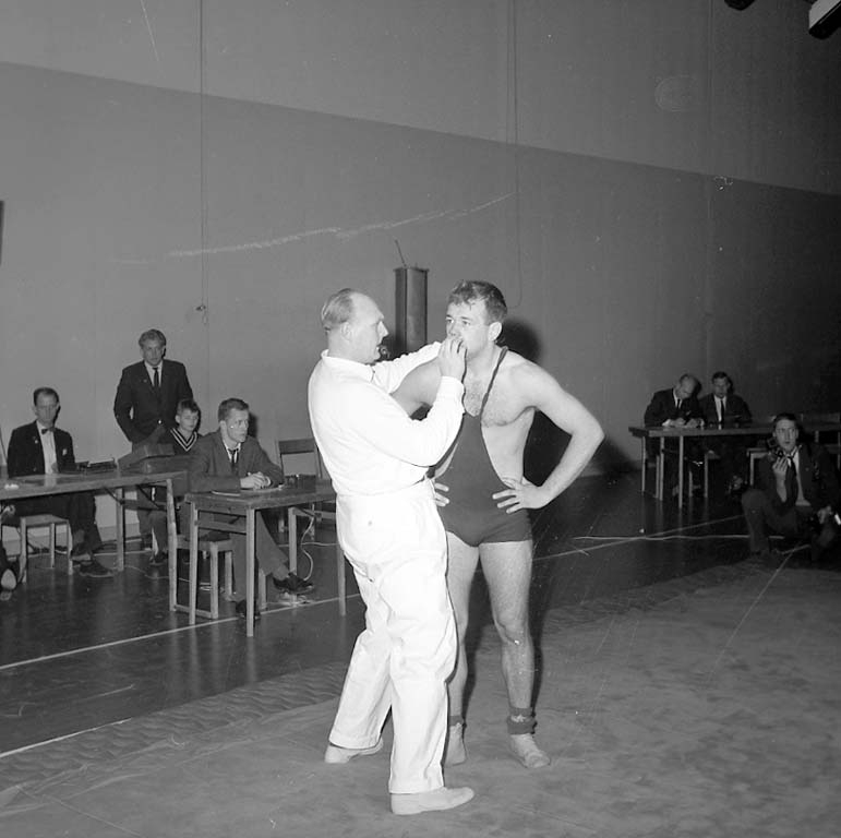 Titel: Enligt notering: "Brottning Idrottshallen 25/1 1961".