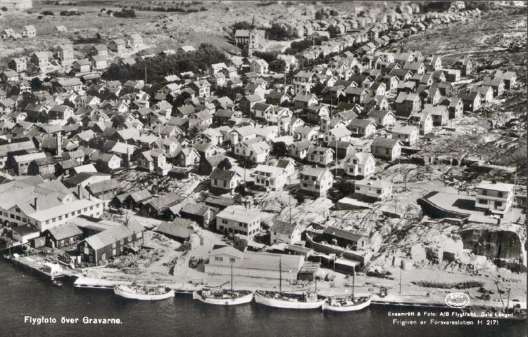Tryckt text på kortet: "Flygfoto över Gravarne".