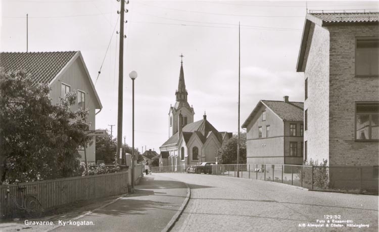 Tryckt text på kortet: "Gravarne, Kyrkogatan".