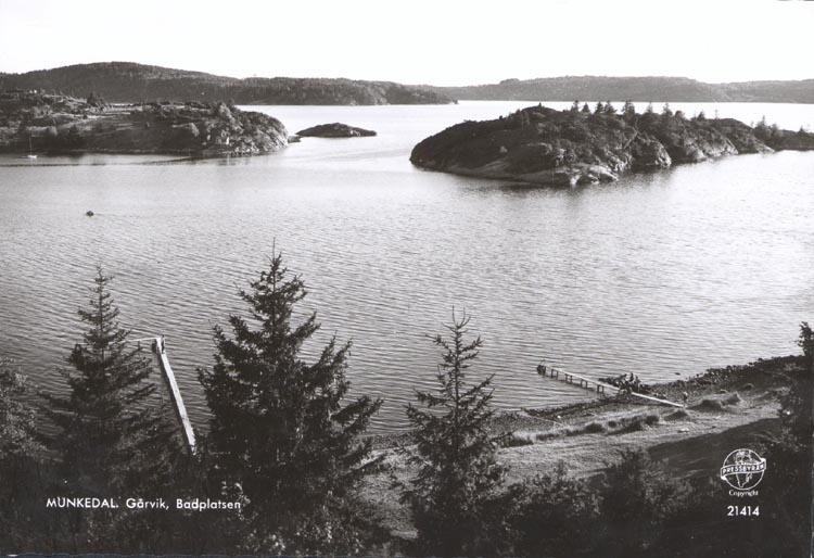 Tryckt text på kortet: "MUNKEDAL. Gårvik, Badplats".