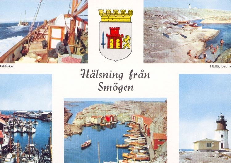 "Räkfiske Hållö. Badliv Hamnen Smyghålet Hållö fyr".