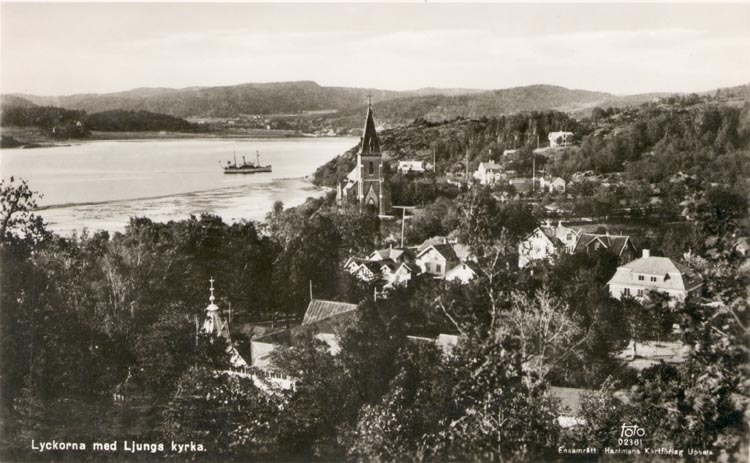 Tryckt text på kortet: "Lyckorna med Ljungs kyrka".