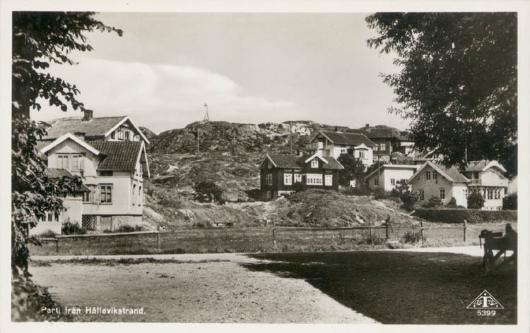 Tryckt text på kortet: "Parti från Hällevikstrand."