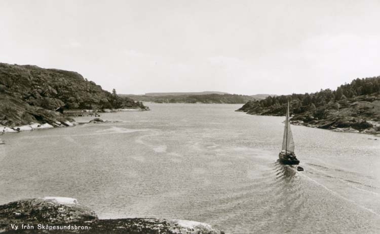 Tryckt text på kortet: "Vy från Skåpesundsbron."