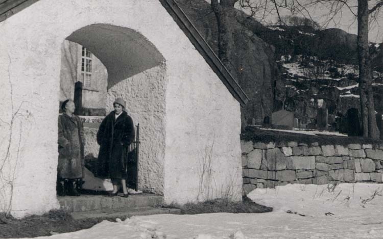 "Mor (Carina Hedvall) och Siv Förnebohm vid Svenneby gamla kyrka."