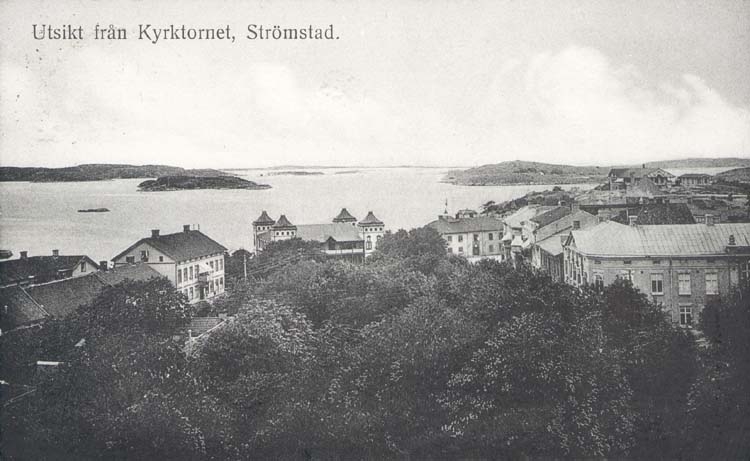 Tryckt text på kortet: "Utsikt från Kyrktornet, Strömstad."