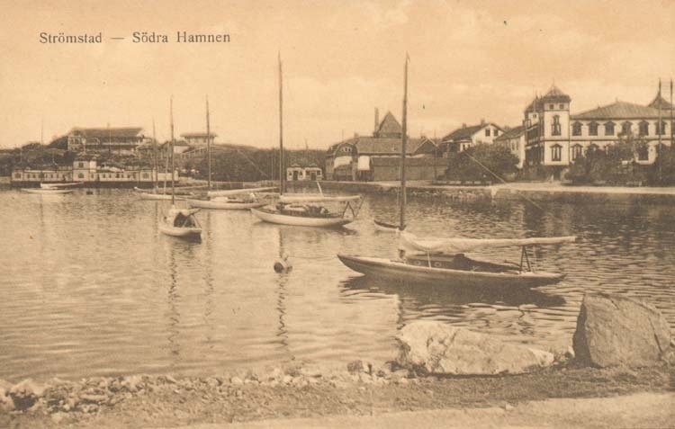 Tryckt text på kortet: "Strömstad. Södra Hamnen."