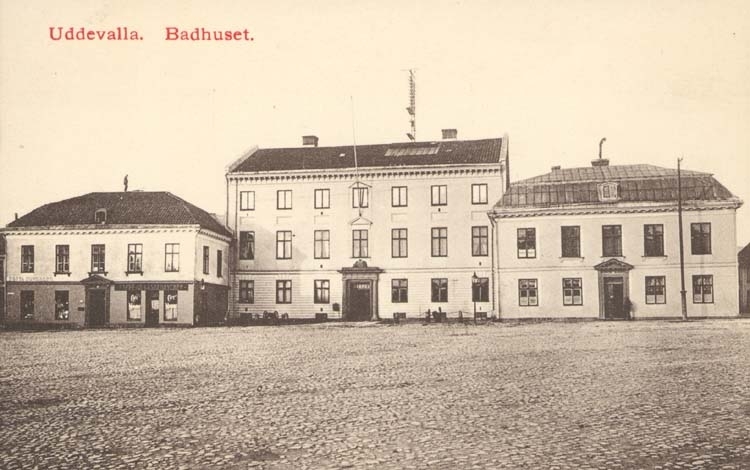 Tryckt text på kortet: "Uddevalla. Badhuset."