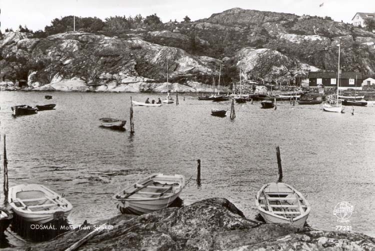 Tryckt text på kortet: "Motiv från Sjöskär, Ödsmål."