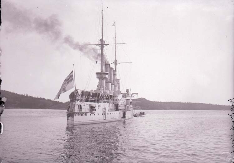Enligt text som medföljde bilden: "Tyske kryssaren Friedrich Carl, Gustafsberg Juni 05".