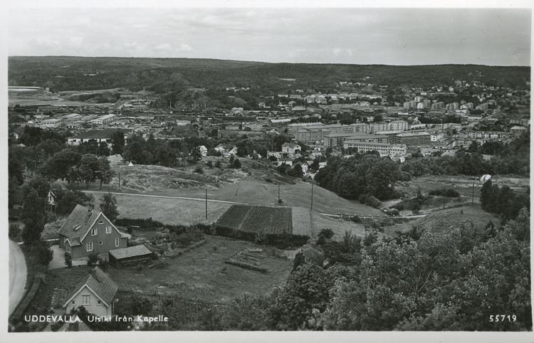 Tryckt text på vykortets framsida: "Uddevalla. utsikt från Kapelle."