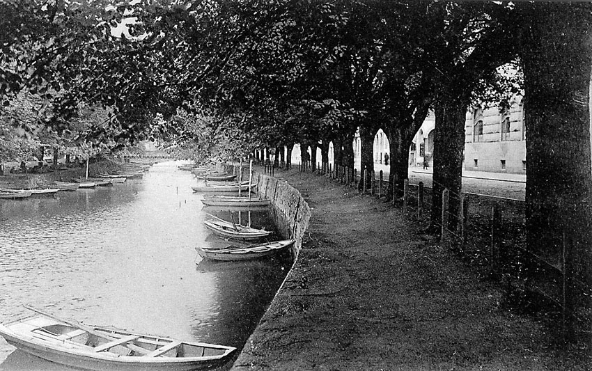 Tryckt text på vykortets baksida: "Uddevalla Bäfveån med Lindarna".