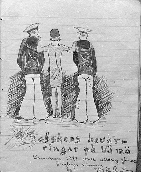 Enligt fotografens notering: "Teckning av gustaf Rundberg Bovallstrand i visbok som han skrev 1929".
