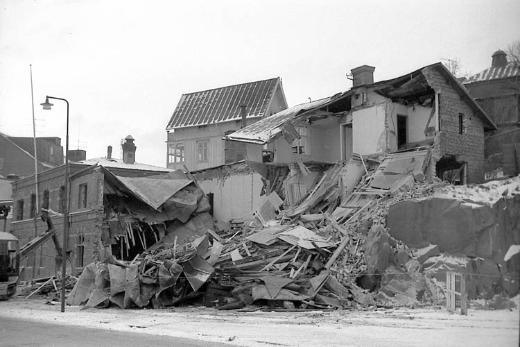 Enligt fotografens notering: "Rivningen Tullen - Falken rivnignen påbörjad".