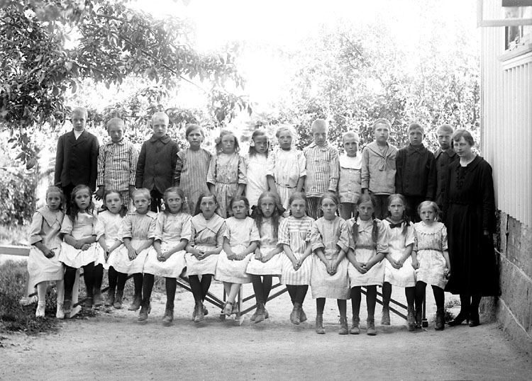 Enligt senare noteringar: "Skolklass någonstans i Foss. Lärarinnan kan vara fröken Sandén."