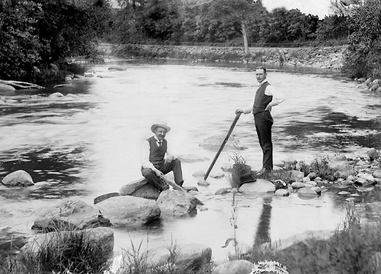 Enligt senare noteringar: "Två okända herrar i Kvistrumsälven, nedanför Gabrielssons fastighet." (BJ)