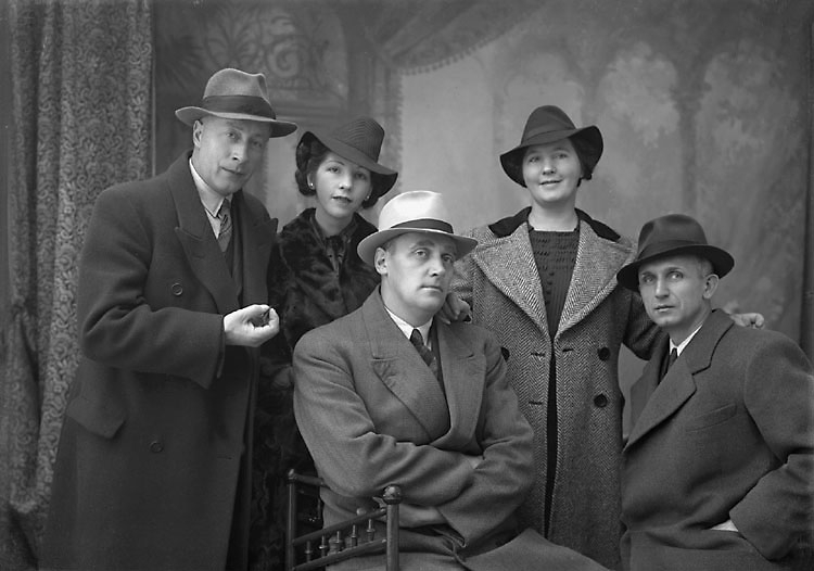 Enligt noteringar: "Grupp damer och herrar. Mannen längst till vänster är folkskollärare Henning Hasselgren." (BJ)