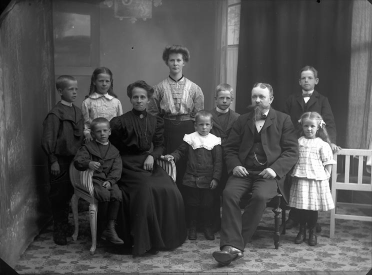 Enligt fotografens anteckningar: "Familjen Lindström gammal plåt Munkedal Lindström maskinförare vid Munkedals bruk".