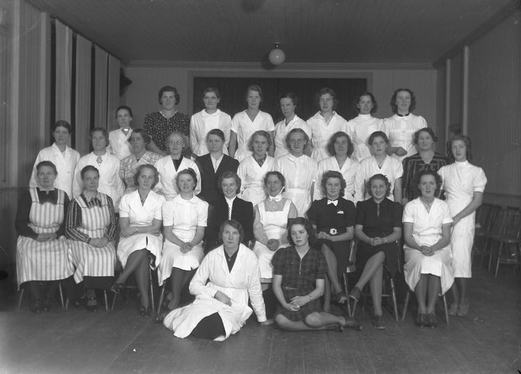 Enligt fotografens noteringar: "Sjukvårdskursen i Föreläsningssalen."