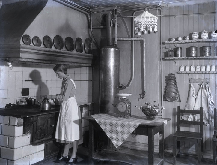 "Patron Meijer Åtorp Munkedal. Fru Karin Smith född Brink från gamla Smedbruket omkr. 1926-1927. Biträde hos Fru Meijer."