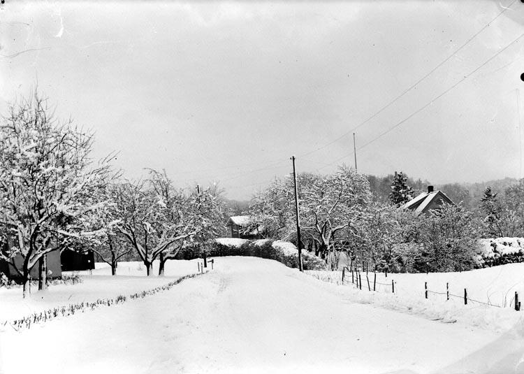 Enligt fotografens noteringar: "1950. Nr: 20. Lindbloms Stuga Lilla Foss. Snömotiv".
