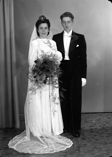 Enligt fotografens journal nr 6 1930-1943: "Ekström, Brudpar Solgården Här".