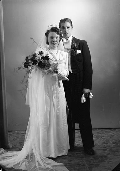 Enligt fotografens journal nr 7 1944-1950: "Svensson, Fru Asta Lasshammar Här brudp".