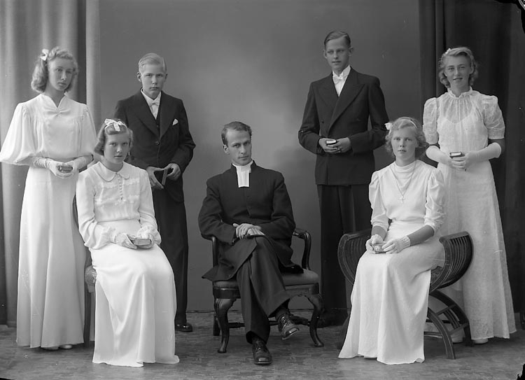 Enligt fotografens journal nr 6 1930-1943: "Rhedin, Pastor Privat - Konfirmander".