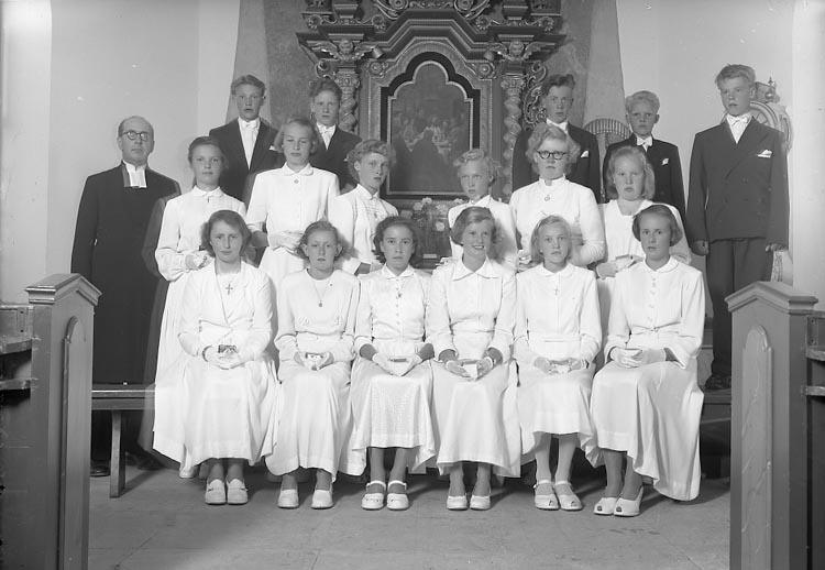 Enligt fotografens journal nr 8 1951-1957: "Konfirmanderna, Komminister Nyblom, Jörlanda".