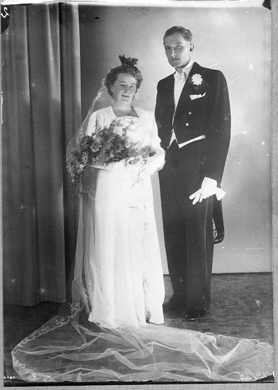 Enligt fotografens journal nr 7 1944-1950: "Karlsson, Brudparet V. Röd Höviksnäs".