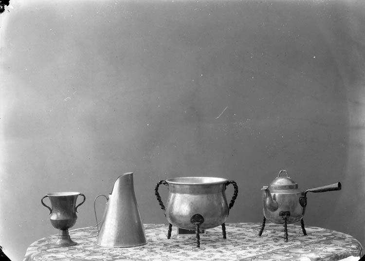 Enligt fotografens notering: "Kannor och grytor i koppar".