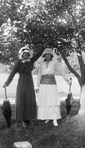 Två kvinnor i en trädgård