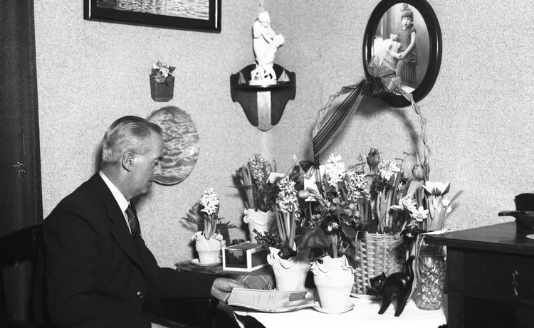 Slöjdlärare Algot Carlsson med födelsedagsblommor