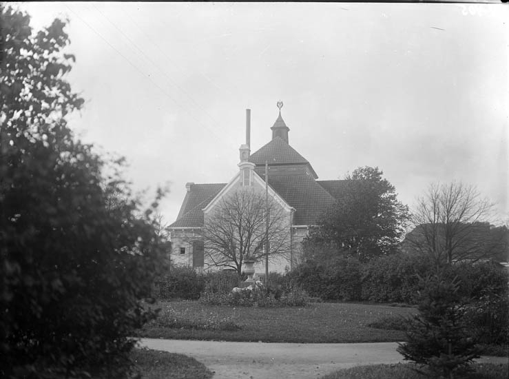 Enligt tidigare noteringar: "Varmbadhuset i Uddevalla i förgrunden liten park."