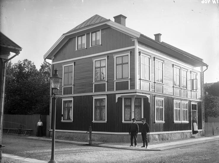 Enligt tidigare noteringar: "Bostadsfastighet i Uddevalla. Vid huset vattenpost, i förgrunden gatlykta för gas."