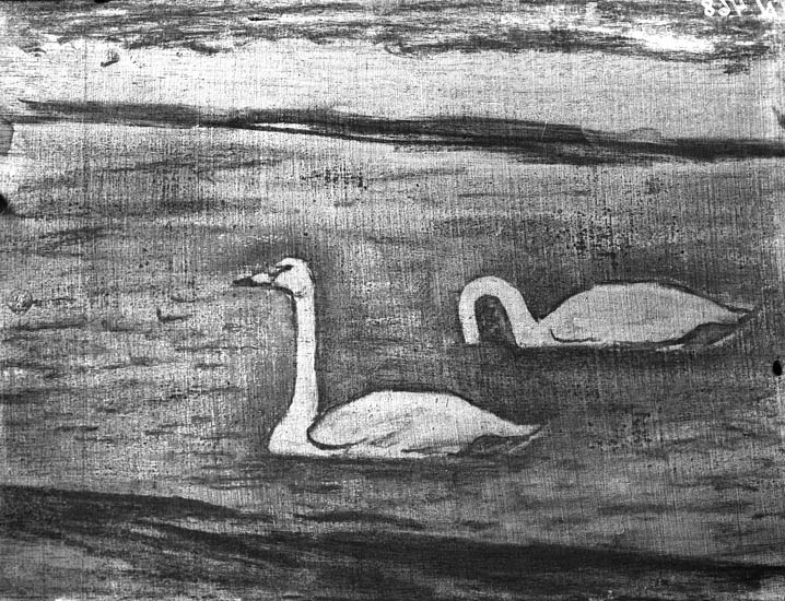 Enligt tidigare noteringar: "Avfotografering av teckning på väv föreställande två svanar."