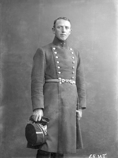 Enligt senare noteringar: "Ateljéfoto. Man i uniform, underlöjtnant, sydstat o mössa m/ä."
