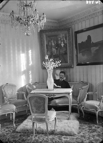 Enligt tidigare noteringar: "Interiör, man i soffa i salong."
