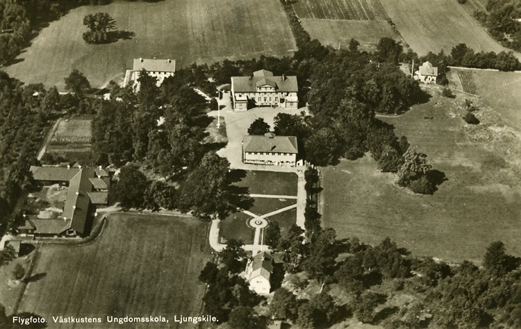 Enligt Bengt Lundins noteringar: "Flygfoto. Västkustens Ungdomsskola, Ljungskile".