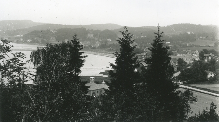 Enligt Bengt Lundins noteringar: "Ljungskile. Utsikt över varmbadhus mot Vällerödsberget".
